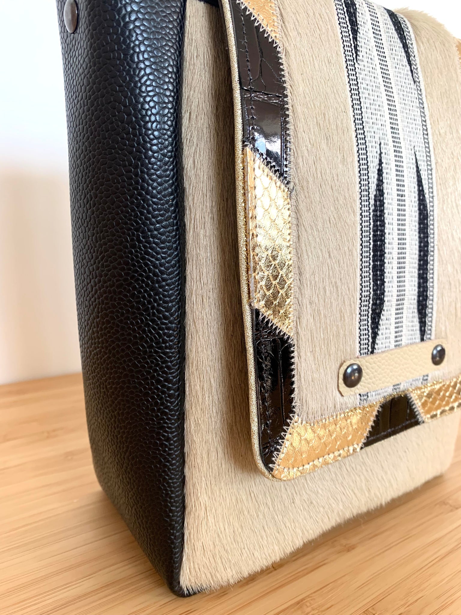 J'espère l’avoir mis à l’honneur avec ce nouveau modèle de besace en patchwork de veau à poil , croco , serpent d’eau et veau grainé