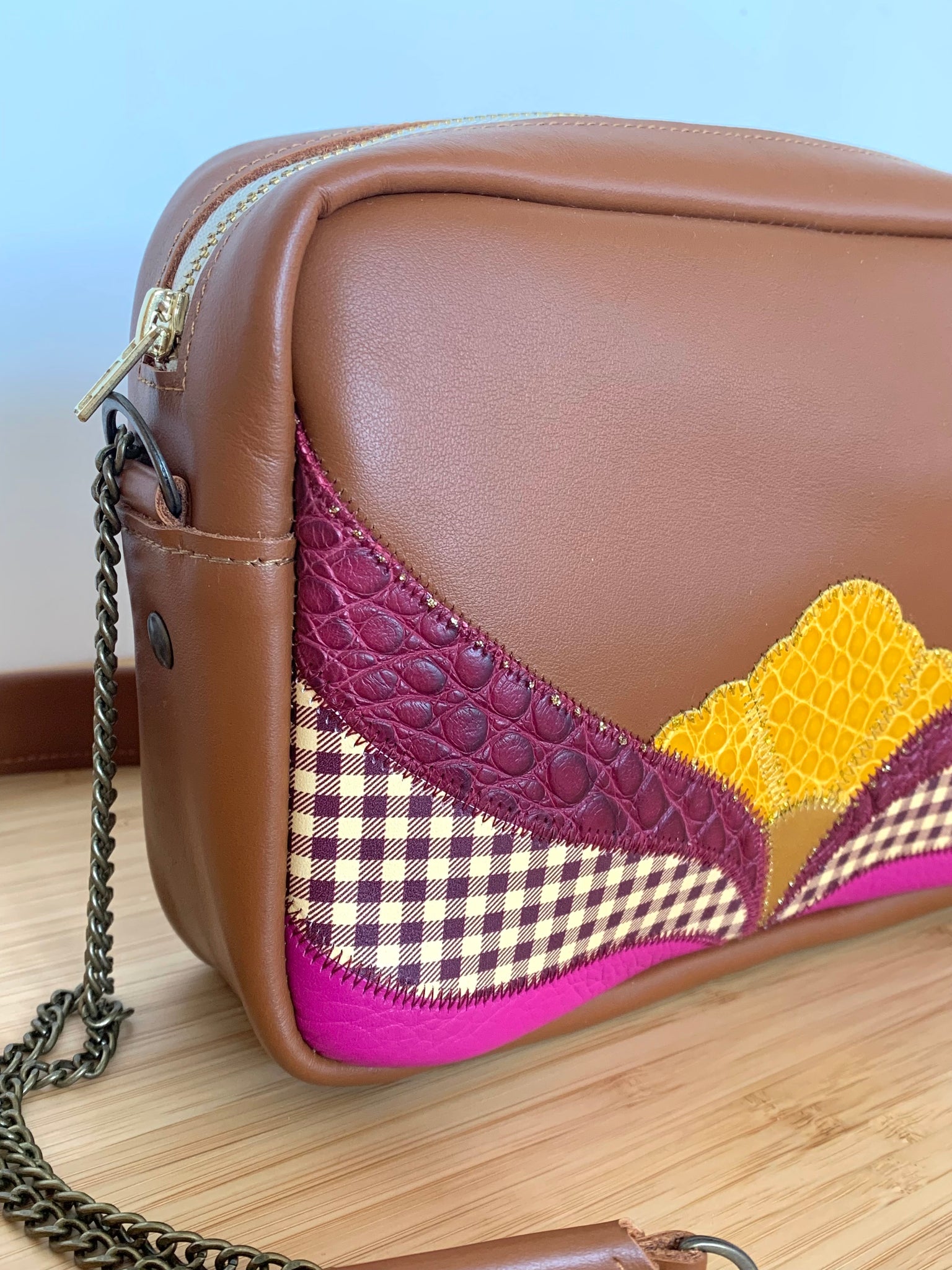 Sacoche florale en cuir de veau , croco et veau imprimé