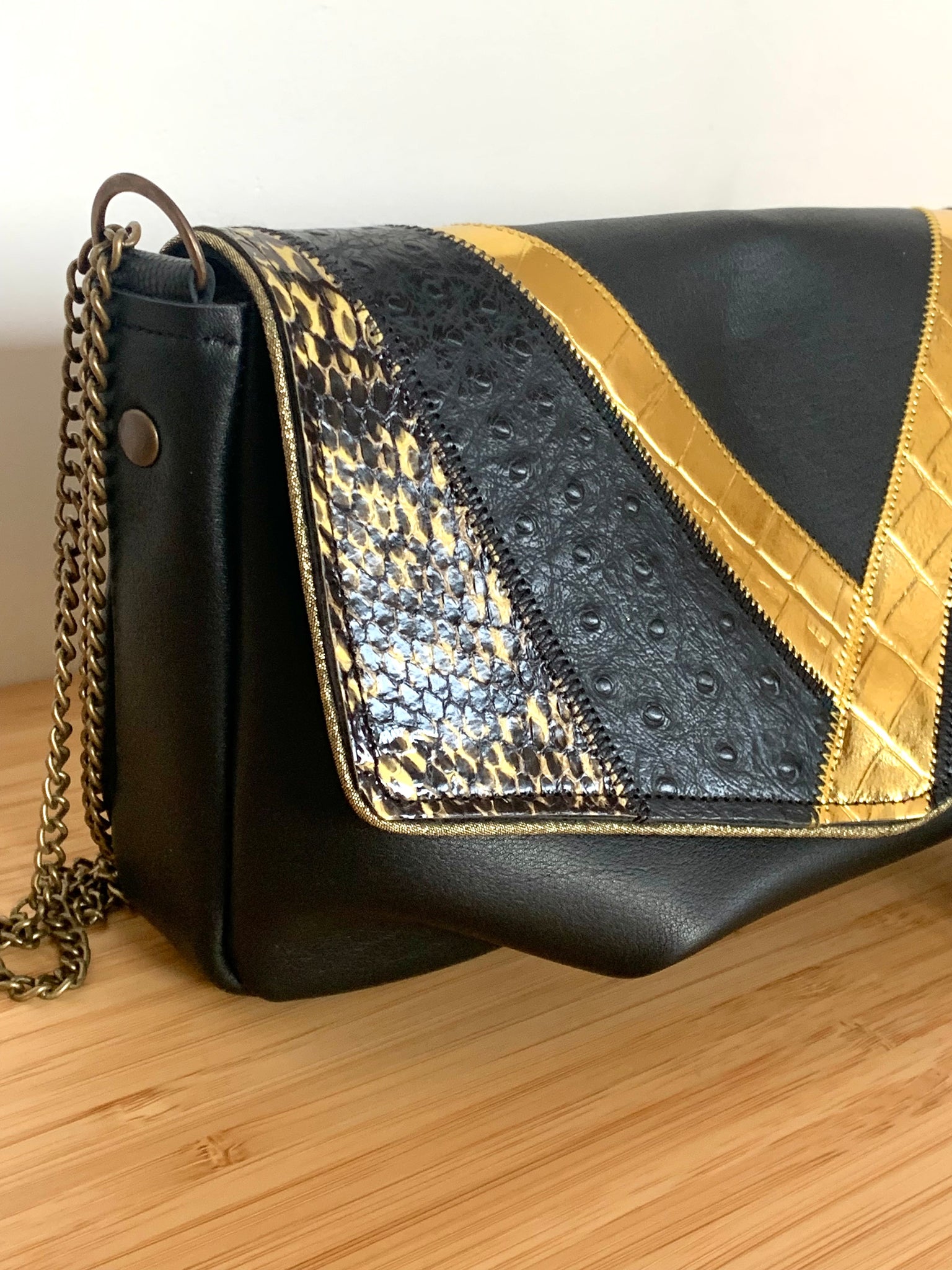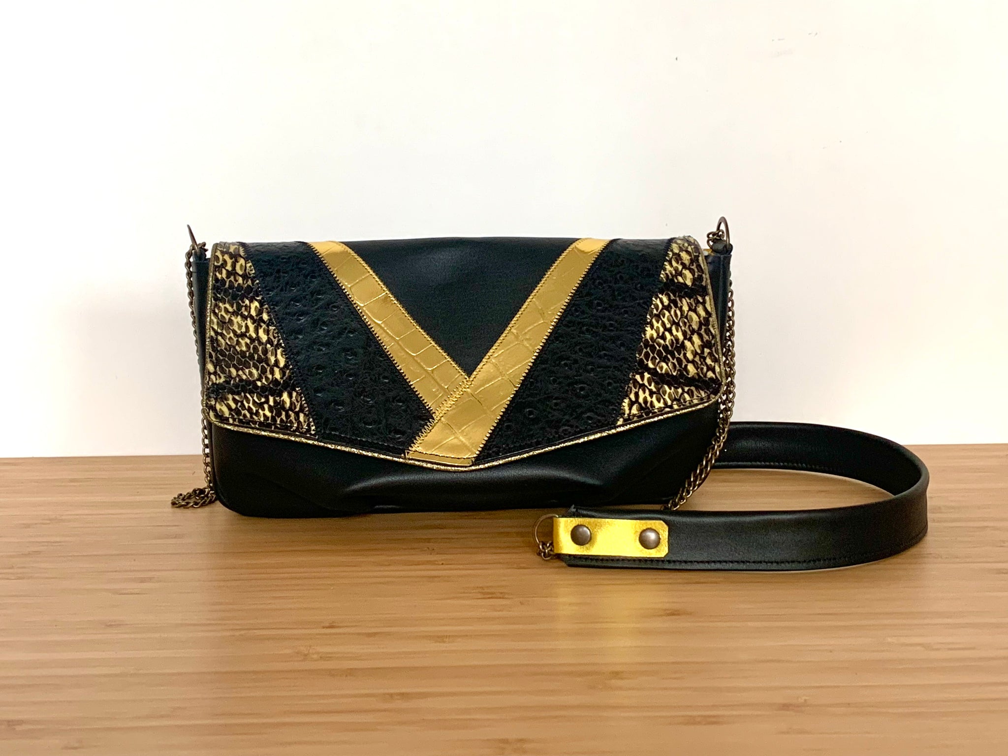 Il est réalisé dans un cuir de veau , serpent d’eau