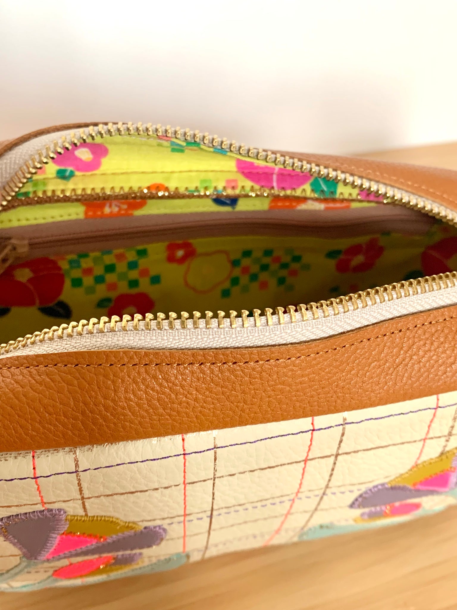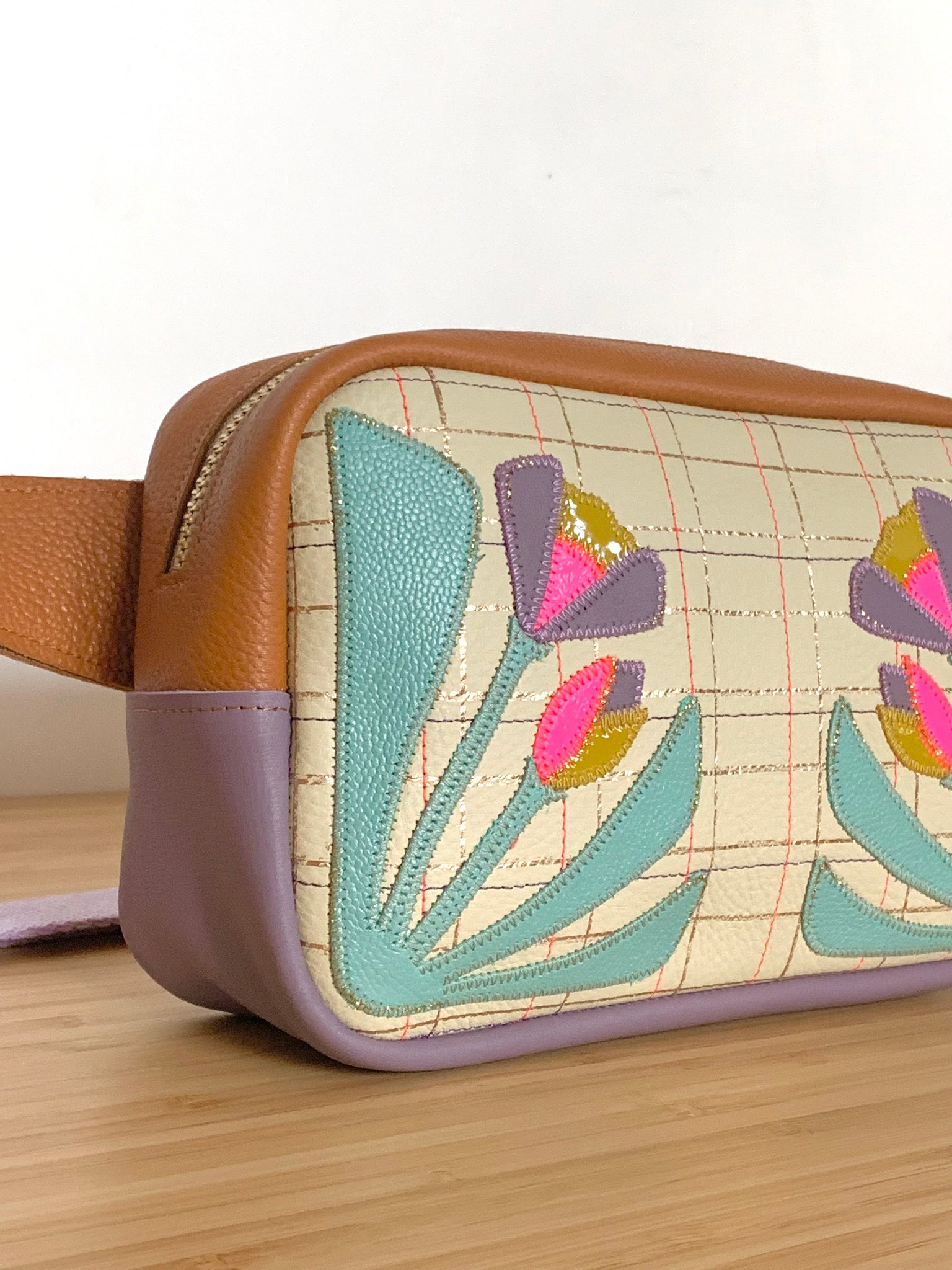 Il est réalisé en cuir de veau , veau imprimé et veau vernis